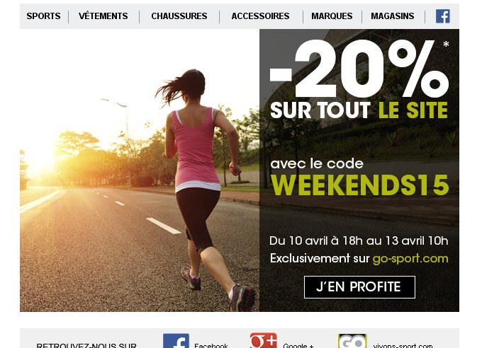 20 pourcent de réduction sur le site gosport jusqu’au 13 avril