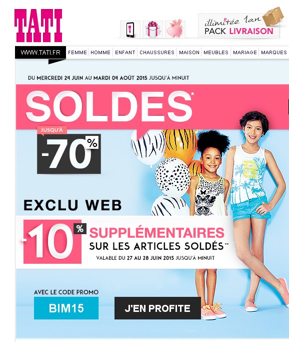 Bon plan Soldes : 10 pourcent en plus chez tati les 27 28 juin