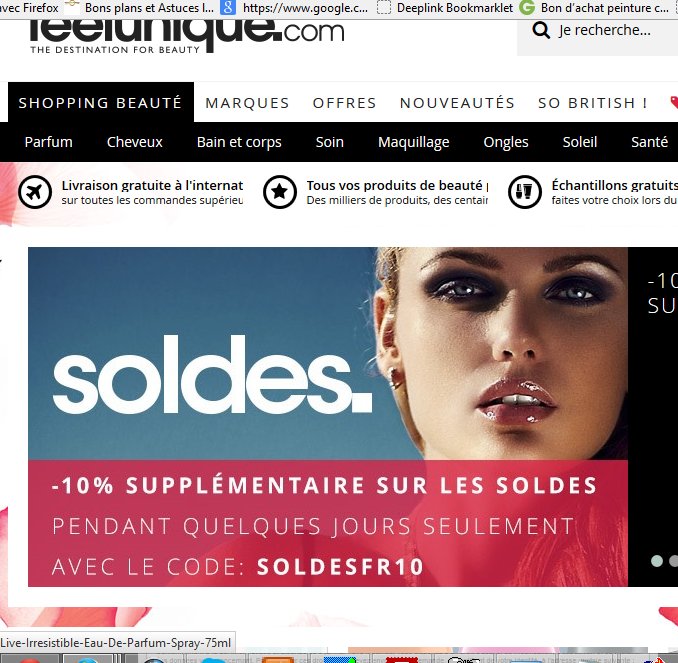 Bonnes affaires parfums et eau de toilette avec toujours les soldes sur le site feelunique et en plus un code promo qui donne 10% de remise en plus :