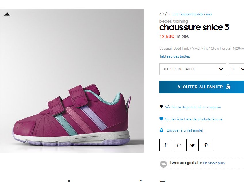 Bonne affaire pour des baskets enfants de la marque Adidas: les snice 3 à scratch sont en promo à 12.5 euros sur la boutique en ligne officielle ..