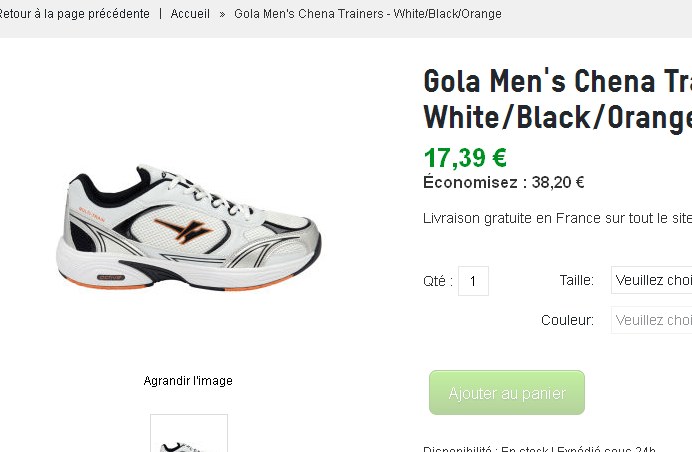 Baskets gola hommes pas chères à 15.65 euros port inclus