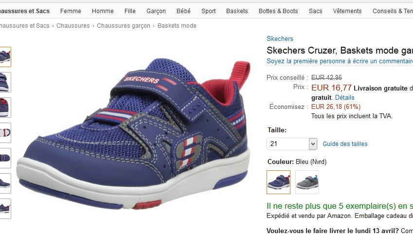 Baskets skechers cuir pour petits enfants à moins de 17 euros