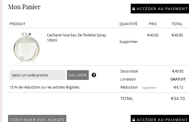 Une mega affaire donc pour cette eau de toilette Noa que l’on voit à 88 euros chez nocibe …