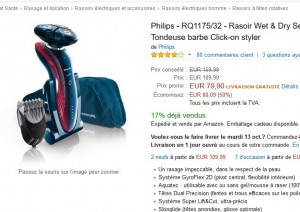 Bon prix pour un bon rasoir pour hommes de la marque philips avec le RQ1175/32 en vente flash à 79.9 le 11 novembre sur amazon ..