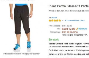 Sur amazon, on peut voir à priori une très bonne affaire sur un pantacourt pour hommes de la marque PUMA :