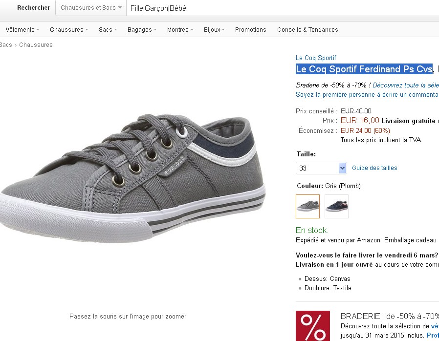 Bon prix pour des baskets coq sportif pour enfants à 16 euros