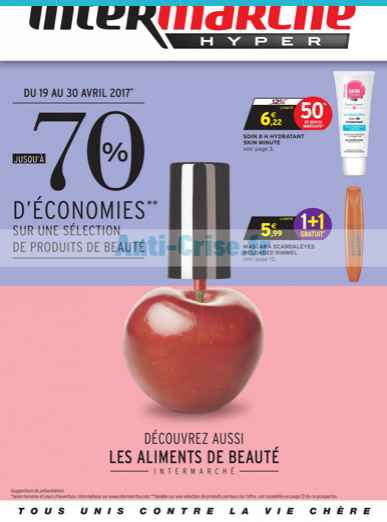 Un tres bon catalogue chez intermarche (dans les hyper) , du 19 au 30 avril … Avec surtout sur des produits hygiènes / beautés jusqu’à 70% sur la carte de fidélité