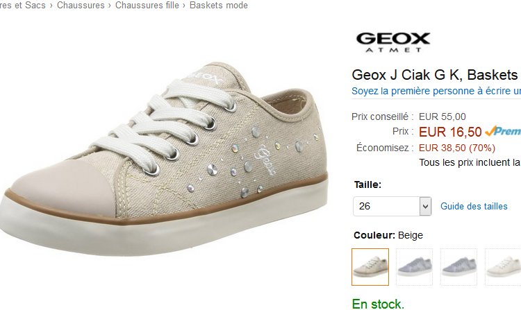 Super prix donc quand on peut voir ces memes baskets geox à 50 euros sur sarenza ..