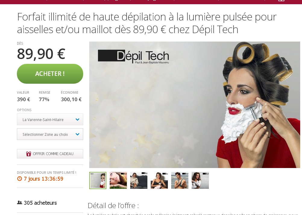 Bon plan pour des forfaits épilations à lumiere pulsée dans 30 centres Depil Tech de France … Sur groupon on peut acheter des bons pour des forfaits ilimités à 89 euros (pour soit maillot , soit aisselles) , soit à 139 euros pour les deux zones ..
