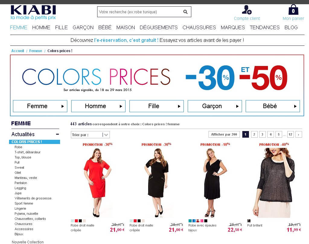 Kiabi : opération colors prices .. jusqu’à 50 pourcent de reduction jusqu’au 30 mars 2015
