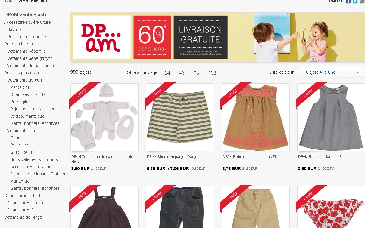 Mode enfants: vente flash DPAM 60 pourcent de réduction et livraison gratuite .. Toujours disponible