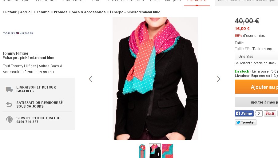 mode : une echarpe Tommy Hilfiger pas chère à 16 euros