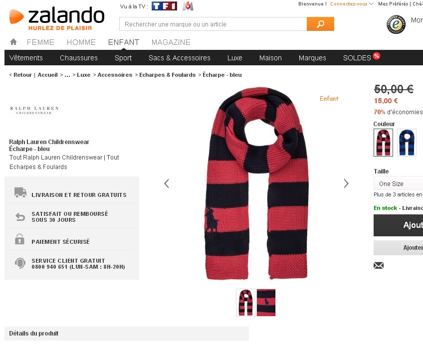 offre mode : Echarpe Ralph Lauren pour enfants à 15 euros