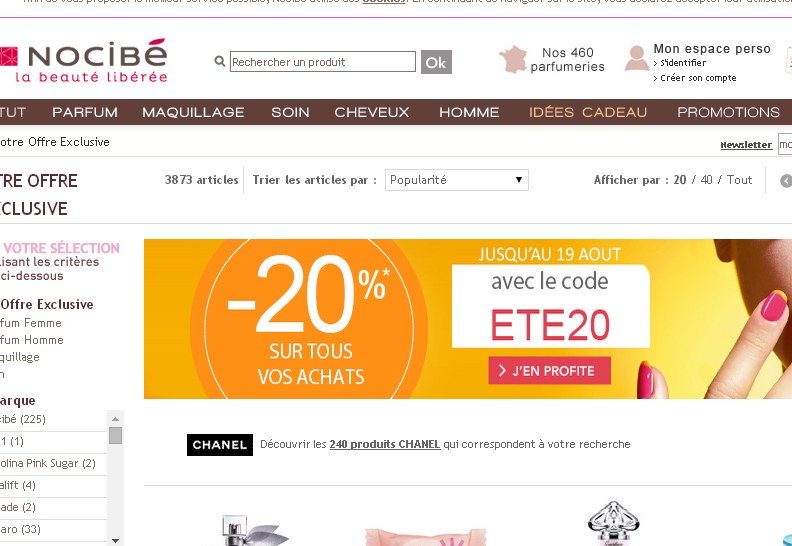 Bon plan parfums, maquillage, produits de beautés sur le site nocibe, avec 20% de remise en utilisant le code promo « ETE20 » …