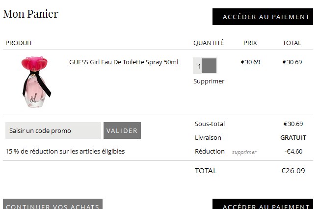 Donc encore une fois une bonne affaire sur feelunique … Le flacon est à 30.69 euros mais on peut ajouter en plus le code de réduction « STYLE2015 » qui fait passer le prix à 26 euros ..