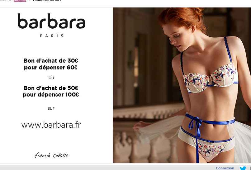 Bon plan pour de la super lingerie pour femmes : avec sur le site showroomprive, la possibilité d’acheter à moitié prix des bons d’achats à utiliser sur la boutique en ligne de la marque de Lingerie Barbara …