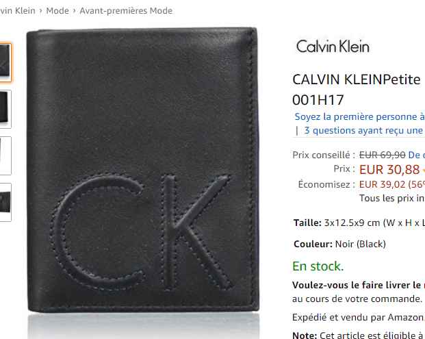 Mais chez amazon, encore une fois, on a droit à un prix bien plus bas et une remise de 50% par rapport à ce prix … et on voit donc ce même portefeuille à 30.88€ seulement