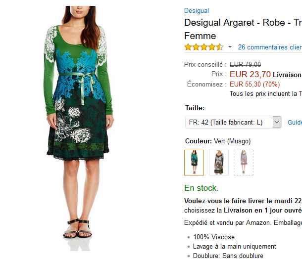 On rappelle qu’il y a aussi toujours un modele de robe desigual encore moins cher, la Desigual Carolina à moins de 16 euros