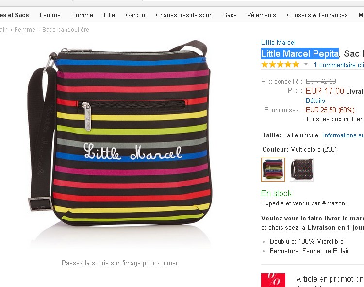 Disponible en deux couleurs : avec les rayures caracteristiques little marcel, ou alors avec des pois