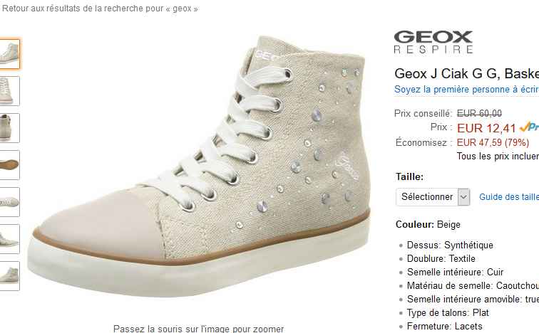 A noter qu’il y a aussi les geox ciak de couleur blanche au meme prix mais dispo uniquement en 30