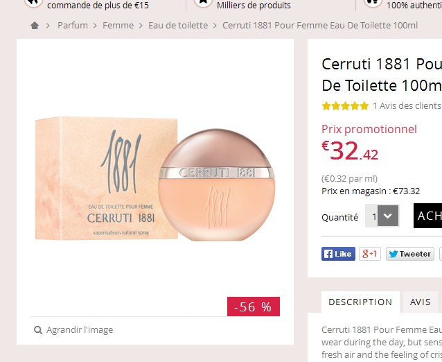 Super affaire parfum : cerruti 1881 100ml pour femmes à 32 euros (contre 85 euros )