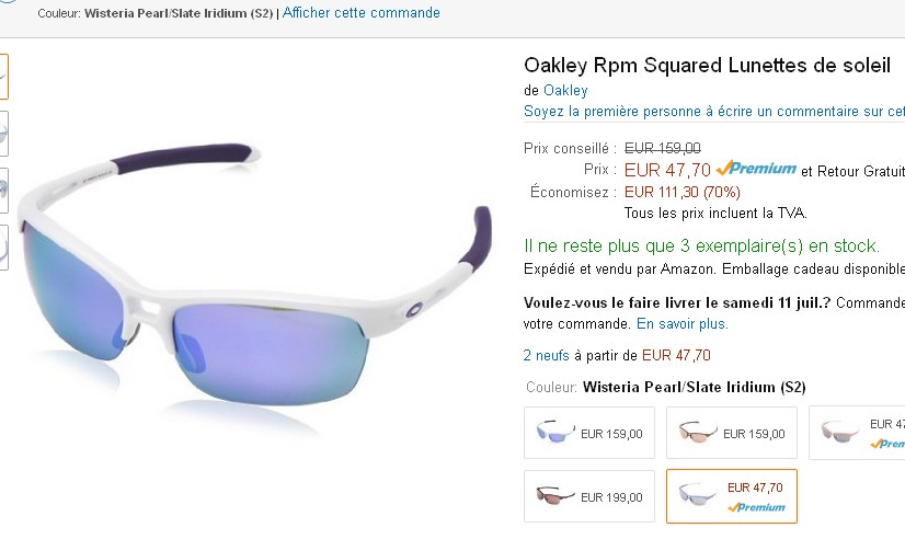 par exemple, les oakley rpm squared à 47.9 euros dans plusieurs couleurs , des paires de lunettes qu’on voit à plus de 100 euros un peu partout ailleurs (meme plutot autour de 120 )