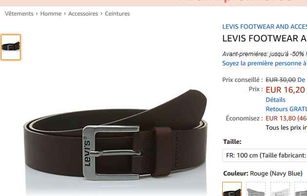 Super prix : 16.2€ la ceinture cuir LEVIS pour hommes (15.2 pour les abonnés premium)