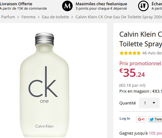 Vendue à seulement 33.74 euros port inclus sur le site feelunique, pour le gros flacon de 200ml … , en utilisant le code de réduction « CADEAUX15 » on a 15% de remise en plus , et le prix passe donc à seulement 28.68 euros