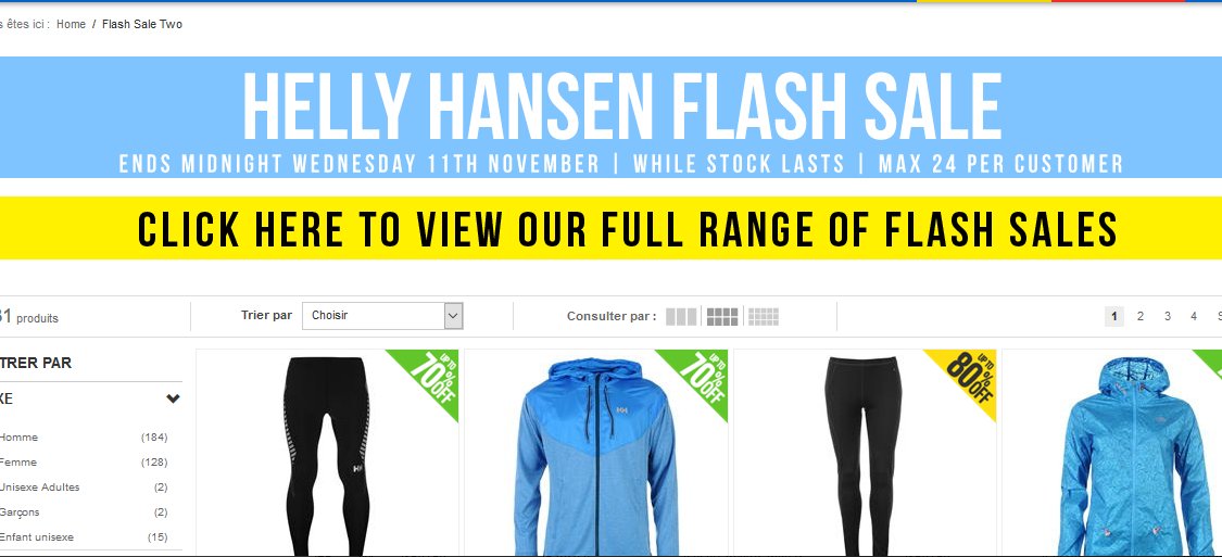 Nouvelle vente flash de vétements sur le site sportdirect avec des articles de la marque Helly Hansen avec des prix cassés :