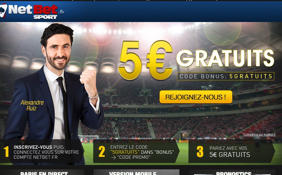 Gratuit : 5 euros offerts pour faire des paris sportifs sur netbetsport