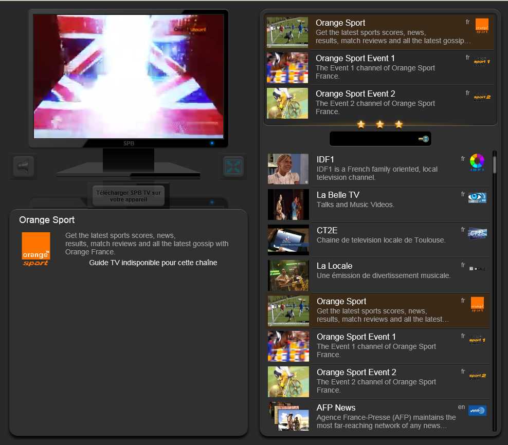 En fait avec spb tv , on accede à de nombreuses chaines de tous pays .. mais c’est surtout le fait d’acceder à orange sport qui semble interessant pour la France , car ces chaines sont normalement payantes et reservées aux abonnés orange..