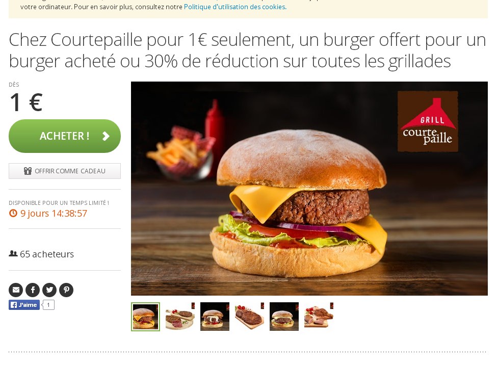 Bon plan restaurant Courtepaille : 1 euro pour avoir un burger offert pour un acheté pour toute une table