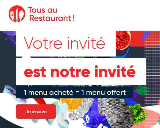 Opération Tous au restaurants 2018 du 1 au 14 octobre .. 1 menu offert pour 1 menu payé