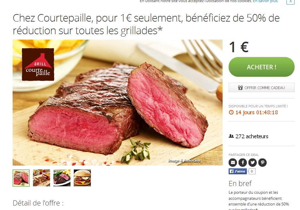 Réduction Chez courtepaille : 50 pourcent sur les grillades jusqu’au 31 aout .. toujours dispo