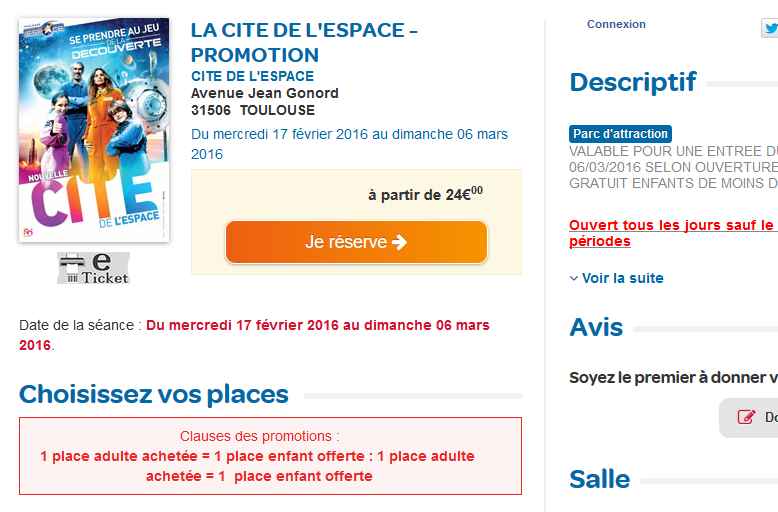 Pour ceux qui sont du coté de TOulouse , et qui désirent aller visiter la cité de l’Espace en famille , une offre interessante sur le site carrefour spectacle :