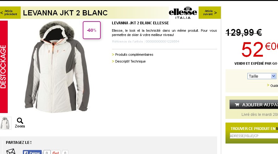 Go sport affiche 60% de réduction sur cette veste .. Et c’est vrai que 52 euros pour une veste de ski de marque , ca parait pas cher