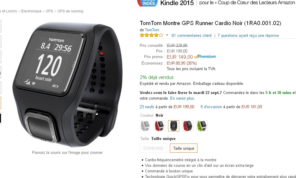 Montre gps cardio en vente flash à 149 euros au lieu de 200 un peu partout ..