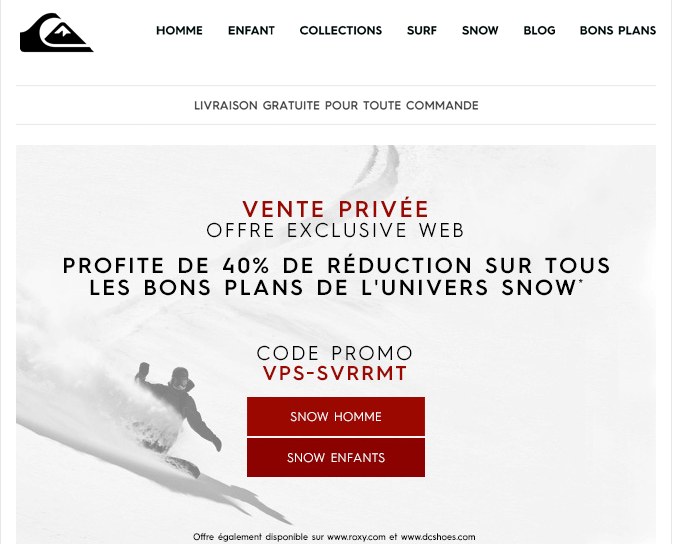 Quiksilver : 40 pourcent de remise en plus sur les articles en promo « Snow »