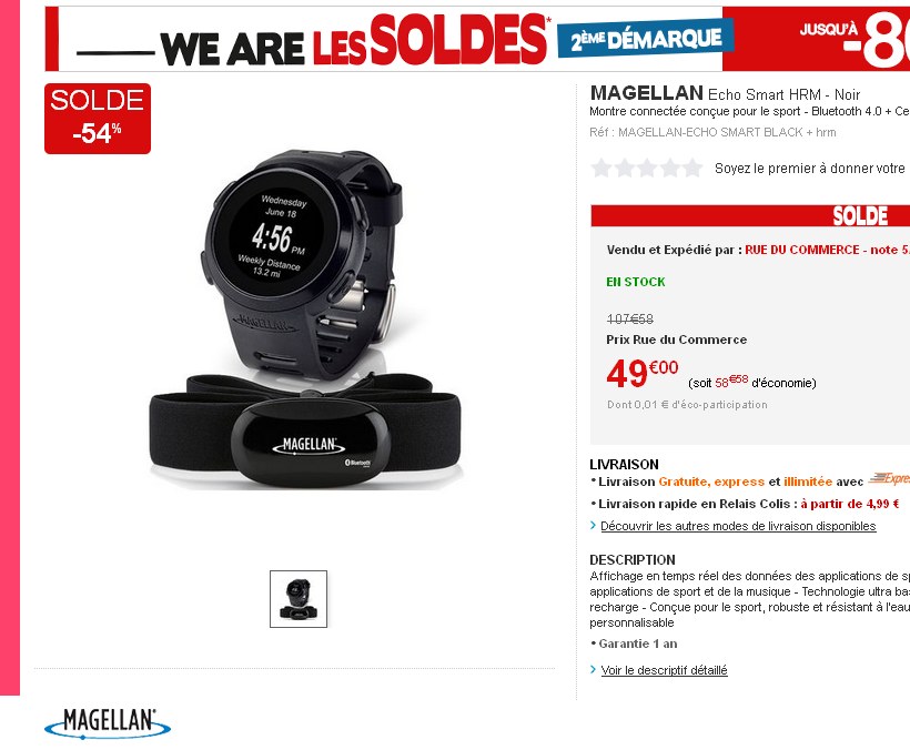 Running : montre magellan echo avec ceintures fréquence cardiaques à 55 euros