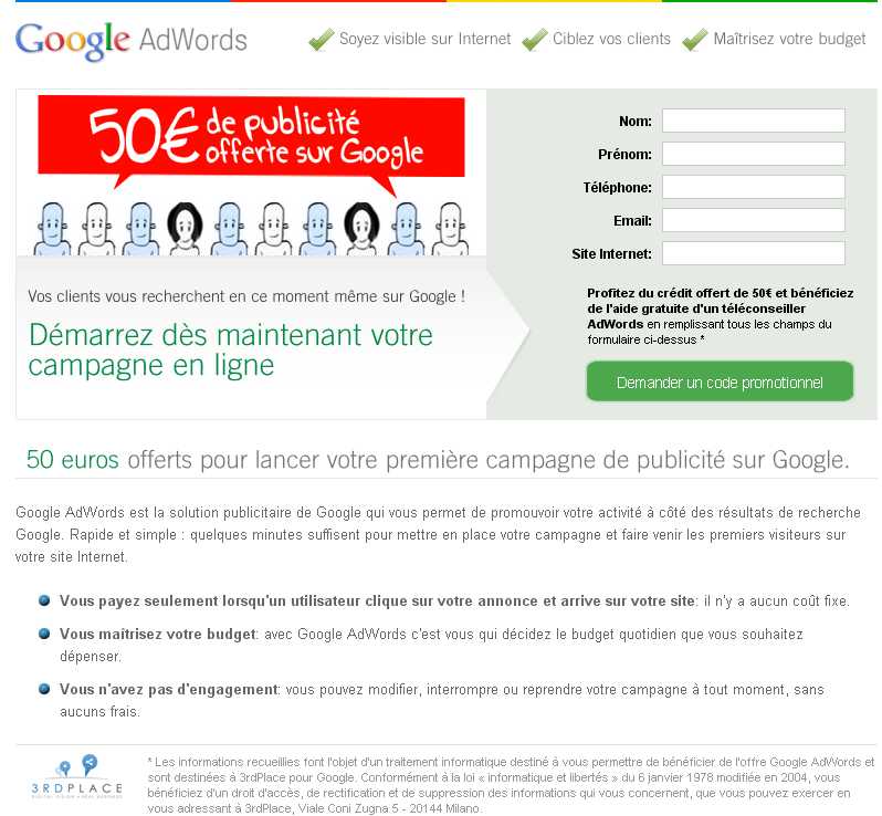 dans le principe , avec adword, vos messages publicitaires seront affichés dans les pages de reponses de google , et sur des sites partenaires .