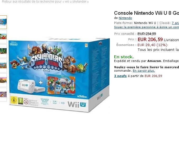 Baisse sur pack console Wii u 8go à 206 euros avec Skylander