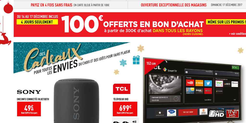 Une opération valable du 20 au 24 décembre et qui concerne tous les rayons ( sauf cuisine ) ..