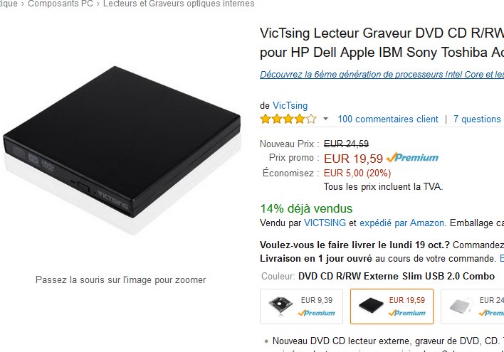 Vous avez un notebook ou un pc portable sans lecteur de dvd / cd ? Bon prix en vente flash sur amazon le 18 octobre pour acheter donc un lecteur graveur de dvd et cd ..