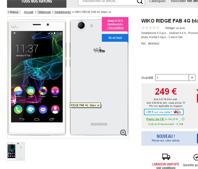 Voir le wiko ridge fab sur auchan.fr