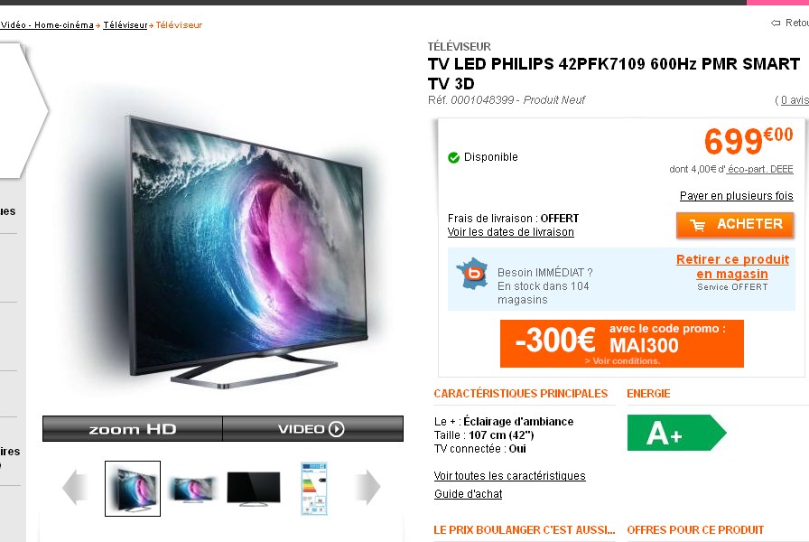 Bon plan tv : Philips 42 pources , connectée à internet , 3d et ambilight à 399 euros