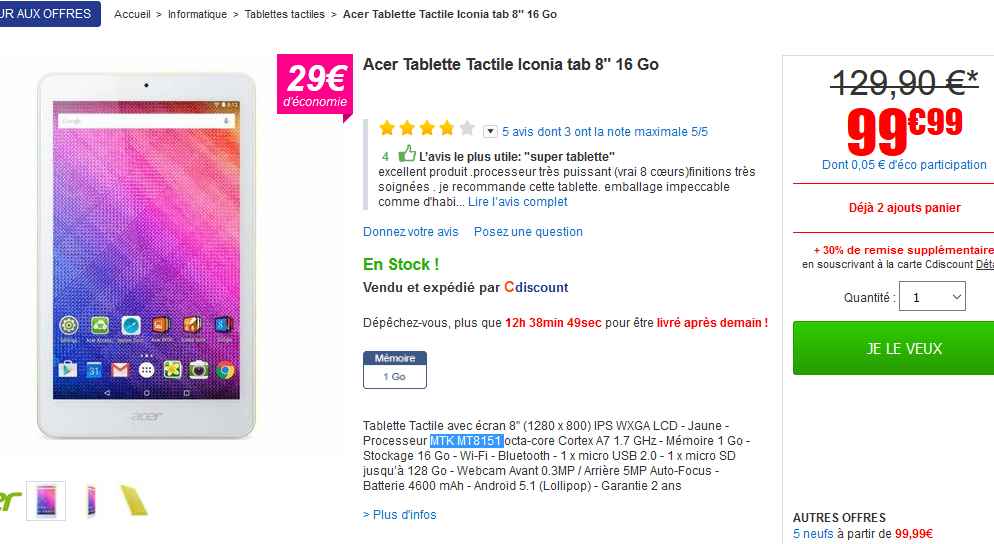 Quoi qu’il en soit moins de 100 euros une tablette octacoeur de marque sur un site français , ca doit etre dur d’en trouver une autre
