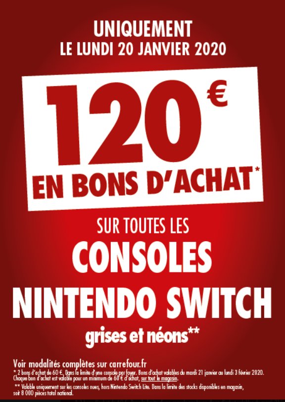On y apprend que l’offre sera valable sur le Drive Carrefour et sur le site jouet carrefour .. cependant au 18/01 on ne voit pas de switch dessus , elles vont surement apparaitre le lundi