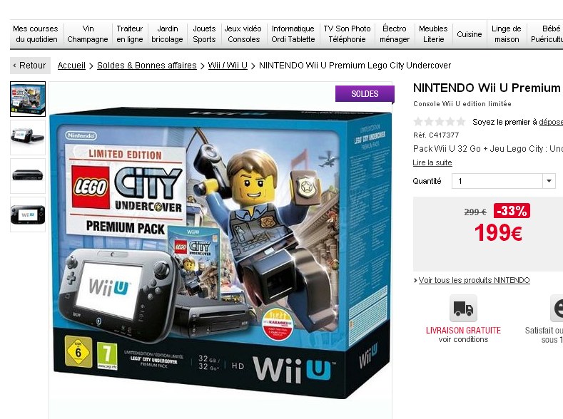 199 euros des packs console wii u 32go sur auchan.Fr …