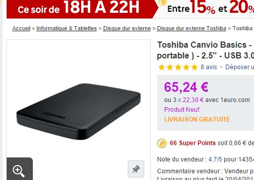 Sur priceminister on peut voir un disque dur toshiba à 65.24 euros, on va donc le payer 56 euros 24..