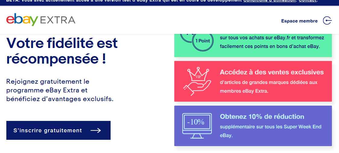 Ebay Extra : le programme de fidélité ebay ( 10% de reduction sur les offres super week end entre autres)